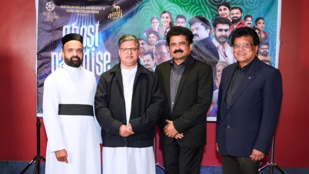 As a heartwarming film, Ghost Paradise has won the hearts of Malayalis in Queensland right from the first screening. On December 2, the film received another full-house screening in Gold Coast. The film will be released in more theatres in the coming days, said producer Joy K. Mathew. The film has been released under Joy K. Mathew’s Global Malayalam Cinema banner, in collaboration with the Australian Malayalam Film Industry. Filmed across Kerala and Queensland, the movie features-alongside Joy K. Mathew-popular Malayalam actors Kailash, Shivaji Guruvayoor, Sohan Seenulal, Saju Kodiyan, Molly Kannamaly, Leelakrishnan, Ambika Mohan, Pauly Valsan, Kulappulli Leela, as well as Australian actors Tasso and Alena.